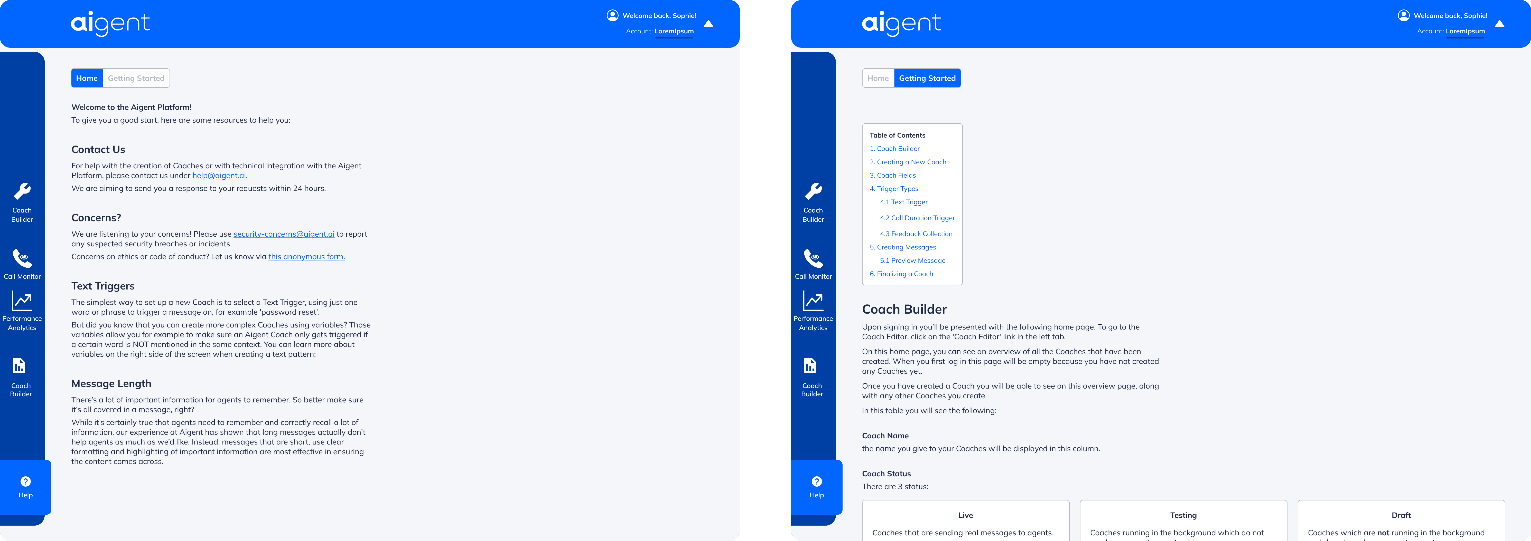 Given the complexity of the platform, I designed onboarding and documentation surfaces to help users get started and understand key concepts.